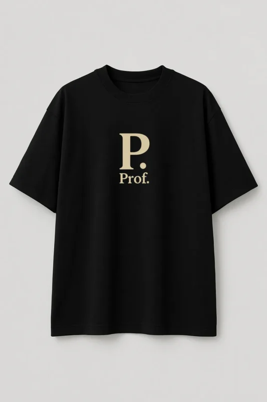 The Urban Fossil oversized tee captures the poetry of urban decay, transforming a distressed monochrome building facade into wearable art. Bold serif “URBAN” above and “FOSSIL” below frame the core visual like a museum curation. Subtle PROFESSOR branding integrates seamlessly into the composition, creating a timeless and sophisticated streetwear piece.