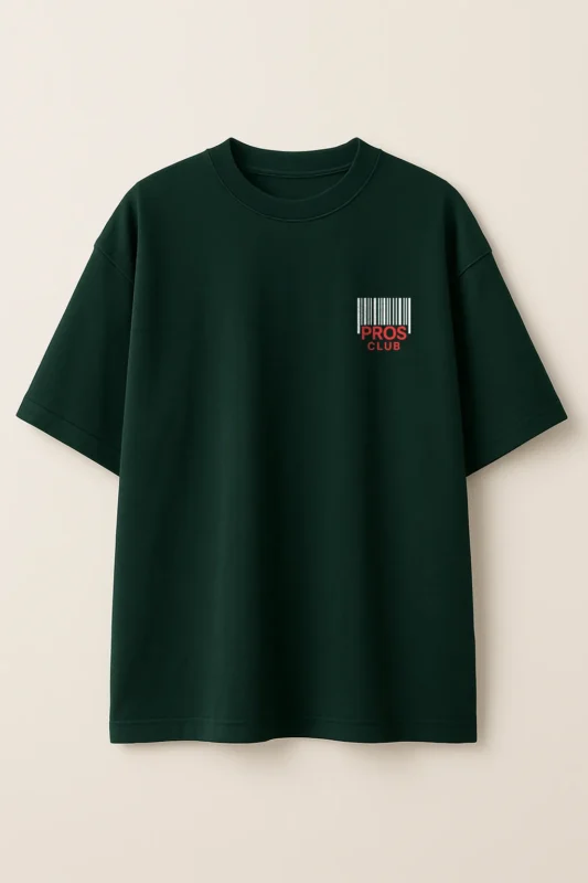 A minimalist front mark meets a bold back statement. The PROS CLUB oversized tee places a compact barcode + “PROS CLUB” on the chest and a large, arresting back graphic — a silhouetted mugshot holding a placard that reads “IDENTITY NOT FOUND.” The design interrogates anonymity, membership, and identity with graphic clarity and street-ready attitude.