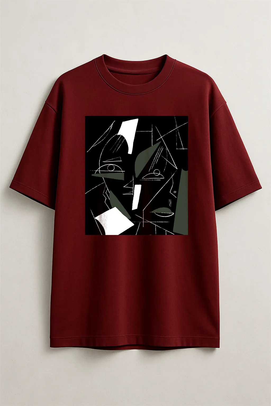 Dripping with emotion and colored in rich maroon, this oversized Abstract tee makes silence feel loud. Printed on ultra-soft 240 GSM cotton, its bold face design is made for fearless thinkers and mood-setters. Drop shoulders. Breathable comfort. Unisex fit.