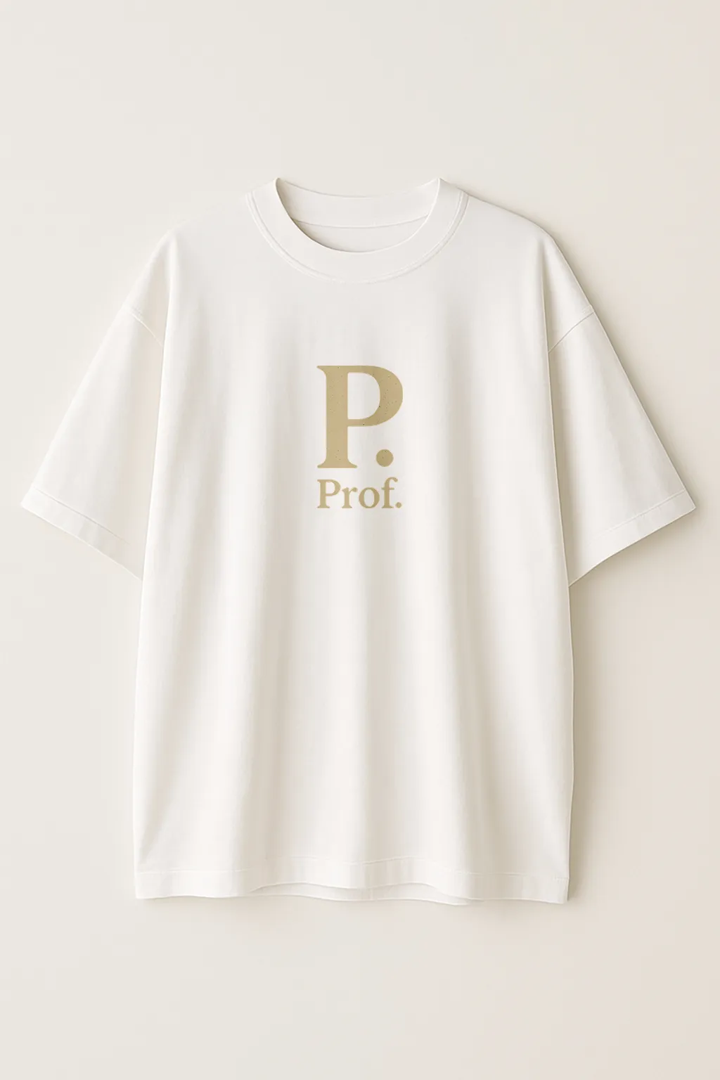 The Urban Fossil oversized tee captures the poetry of urban decay, transforming a distressed monochrome building facade into wearable art. Bold serif “URBAN” above and “FOSSIL” below frame the core visual like a museum curation. Subtle PROFESSOR branding integrates seamlessly into the composition, creating a timeless and sophisticated streetwear piece.